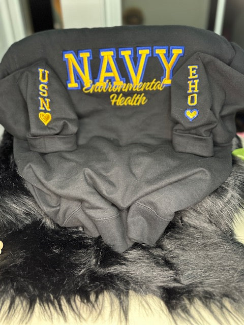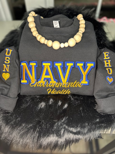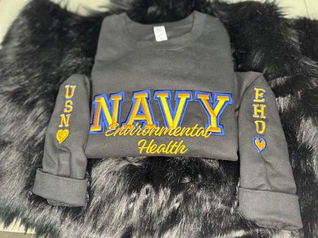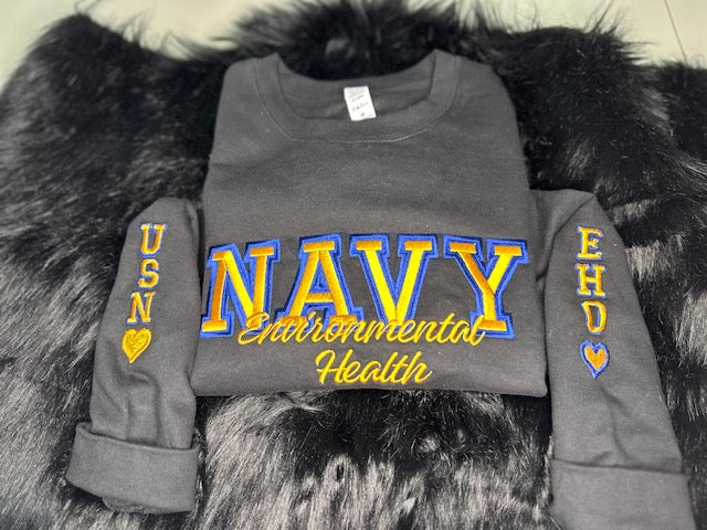 Custom Navy Specialty Sweatshirt (Ex: Navy Environmental Health, Navy Industrial Hygiene, Navy Healthcare Administration, etc.)